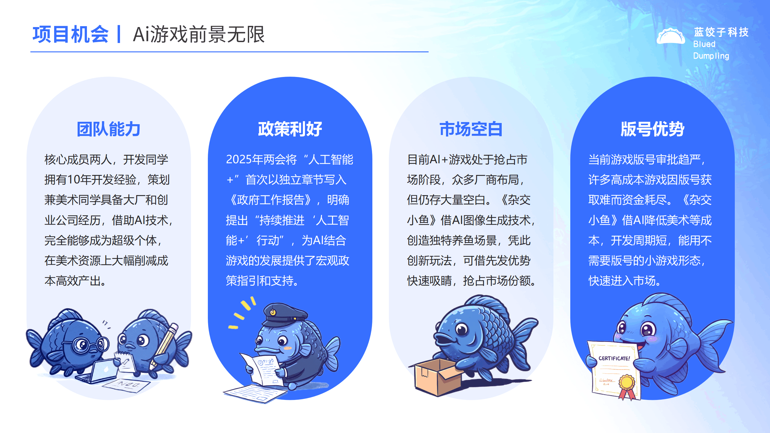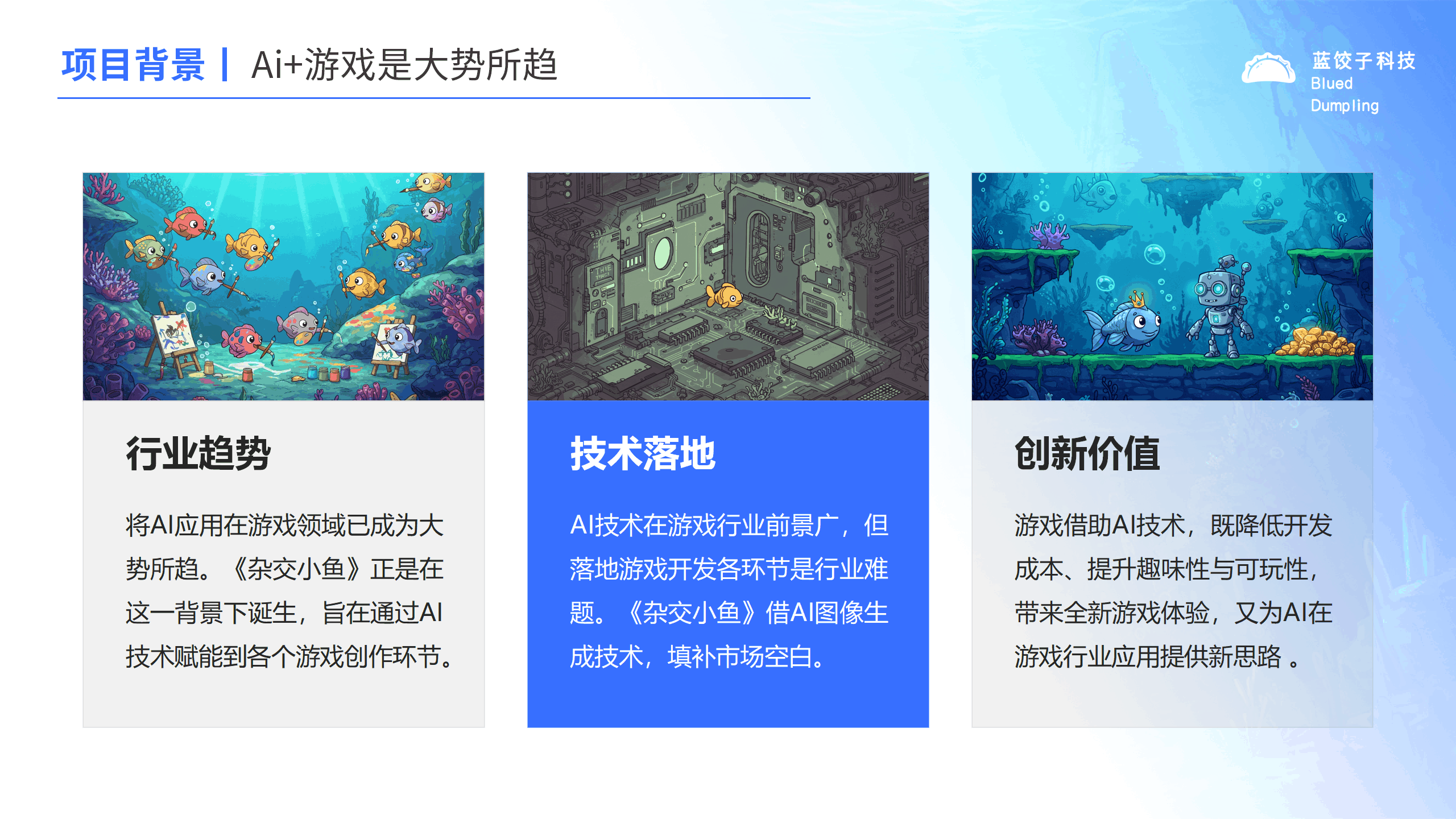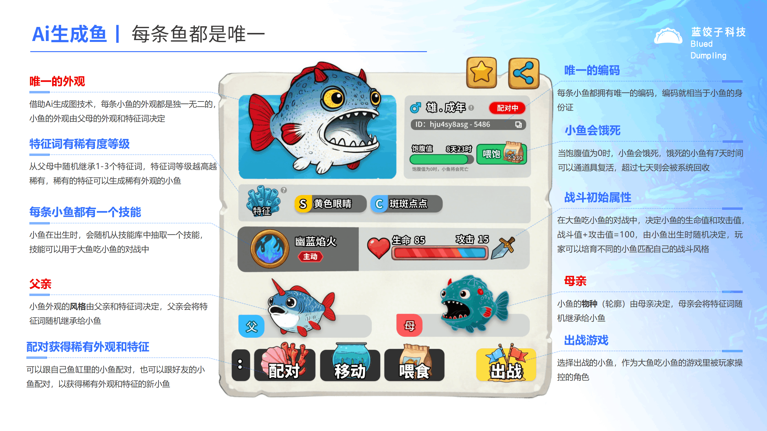《杂交小鱼》是一款深度融合 AI“实时”图像生成技术的游戏。玩家通过独特的【杂交】【进化】【合体】玩法,培育出无穷变化的新小鱼,还能参与百人对战。借助 Ai 实时图像生成技术,每条小鱼都拥有全宇宙独一无二的外观和编号。项目由经验丰富的两人团队运作,项目具备低成本高潜力优势。
