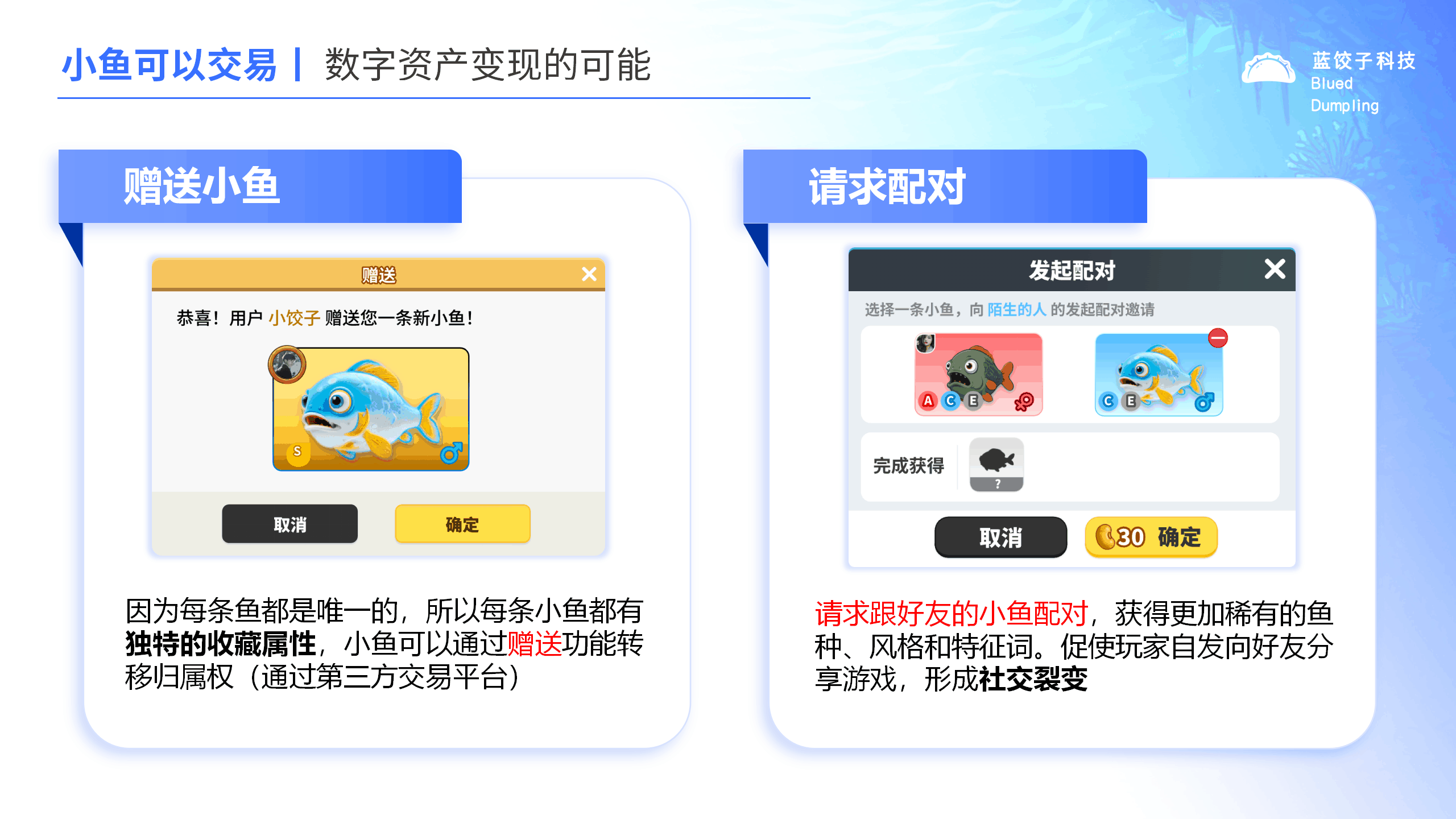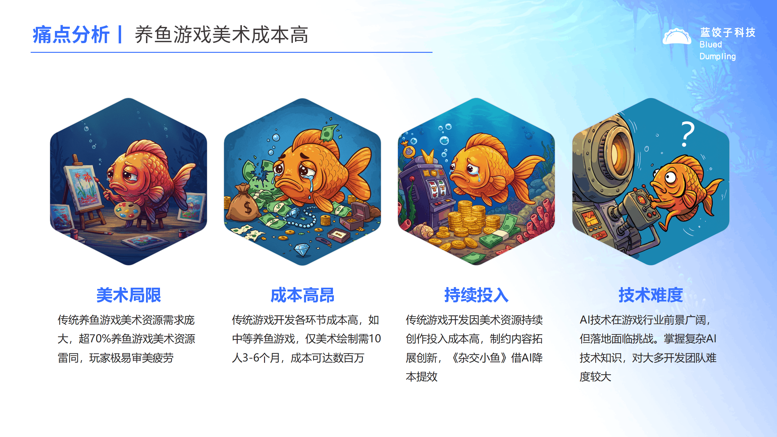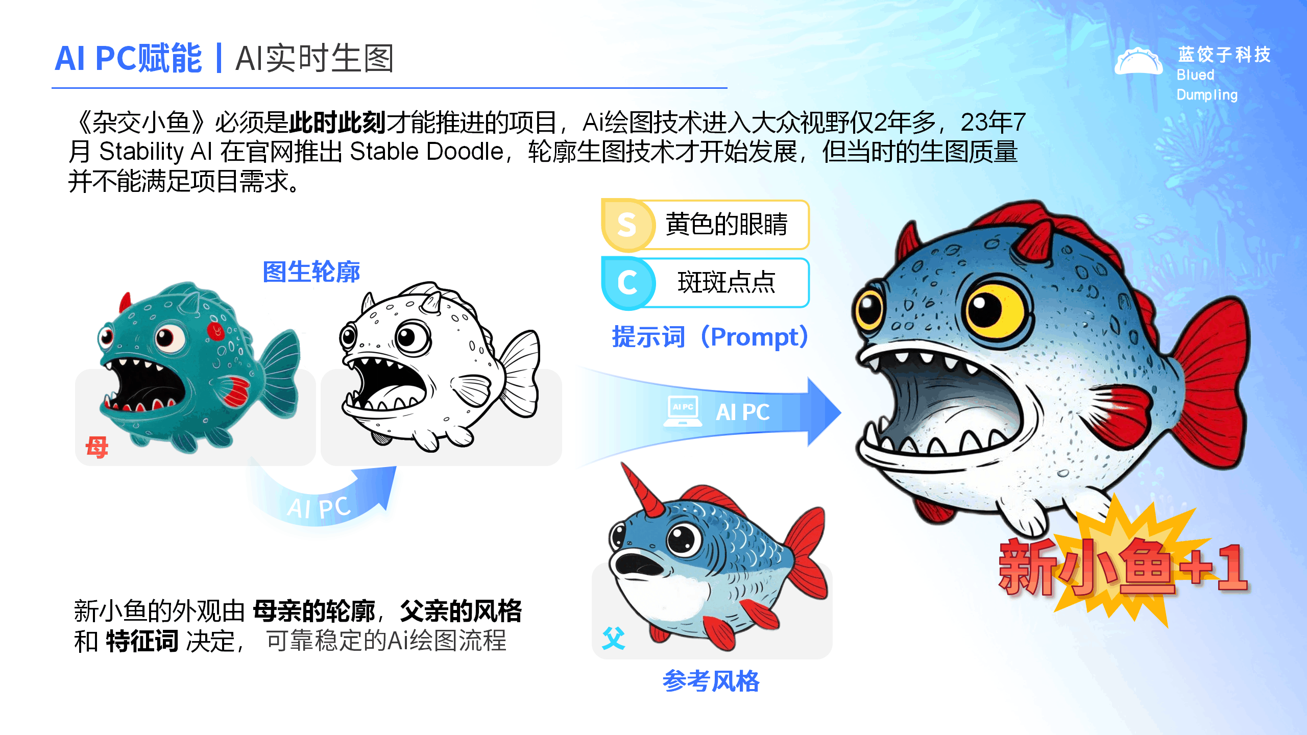 《杂交小鱼》是一款深度融合 AI“实时”图像生成技术的游戏。玩家通过独特的【杂交】【进化】【合体】玩法,培育出无穷变化的新小鱼,还能参与百人对战。借助 Ai 实时图像生成技术,每条小鱼都拥有全宇宙独一无二的外观和编号。项目由经验丰富的两人团队运作,项目具备低成本高潜力优势。